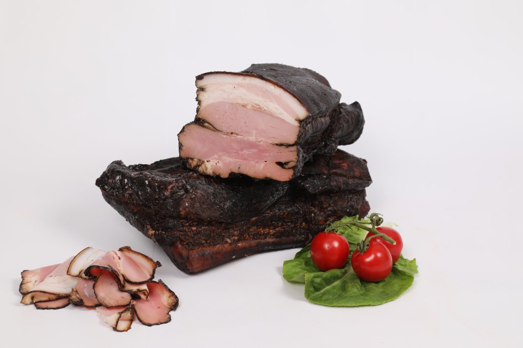 Jemně uzený výrobek s tmavým pokryvem. Na řezu světle růžový s tmavým okrajem. Chuť po čerstvé uzenině.