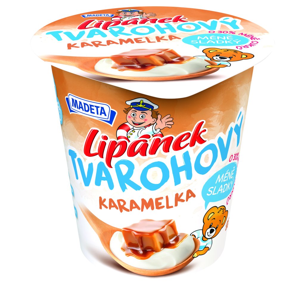 Tvarohový krém ochucený karamelovou složkou [cukr, kondenzované mléko (mléko, cukr), 2,9 % karamel, citronová šťáva, přírodní aroma, sůl]